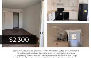 For Lease 96 Highriver Trail, Welland, Niagara Rent: $2,300/month 3 Bedrooms, 2 Full Baths & 1 Car garage